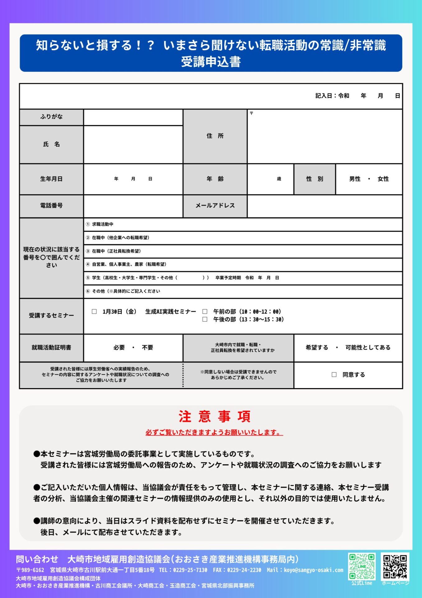 問合せ先:大崎市地域雇用創造協議会